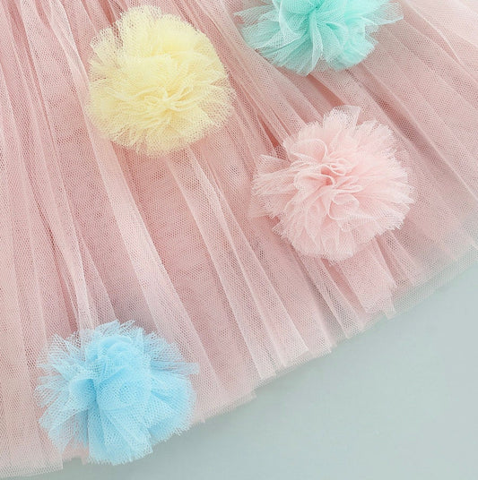 Toddler Girls PASTEL Ombre Pom Pom TUTU | Child Rainbow POMPOM Soft Tutu | Adorable!