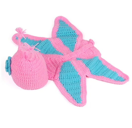 BABY Girls Crochet BUTTERFLY 2 Piece Photo Prop Outfit | Newborn Pink and Turquoise Butterfly Costume | ADORABLE!