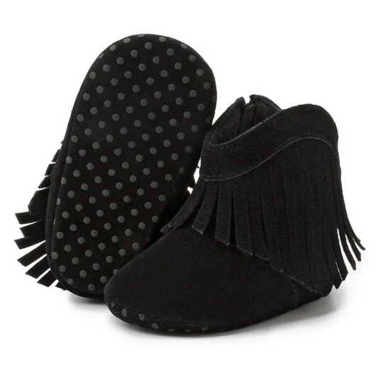 Baby Toddler Black Cowboy Boot Slippers | First Walkers Fringe Boots | Great for Baby Gift!