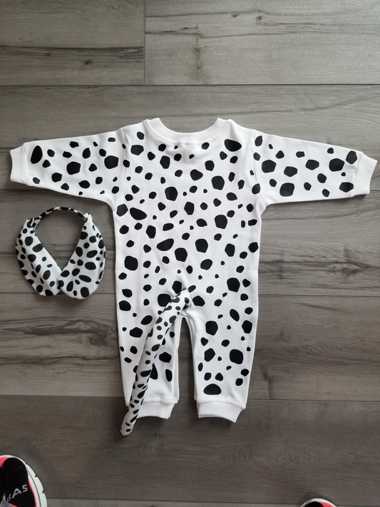 Baby Toddler Halloween DALMATIAN One Piece Romper | Long Sleeve Soft Halloween Costume One Piece DALMATION DOG with Matching Headband | ADORABLE!