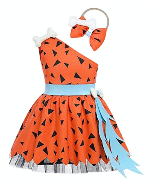 Girls 2 Piece PEBBLES Halloween Dress Costume | FLINSTONES Pebbles Dress Costume and Matching Headband | ADORABLE!