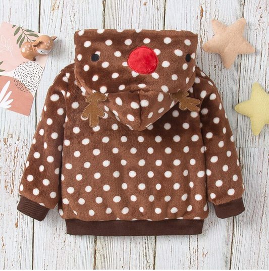 Baby Toddler Fleece Reindeer Hooded Jacket | Christmas Polka Dot Reindeer Jacket | Adorable!