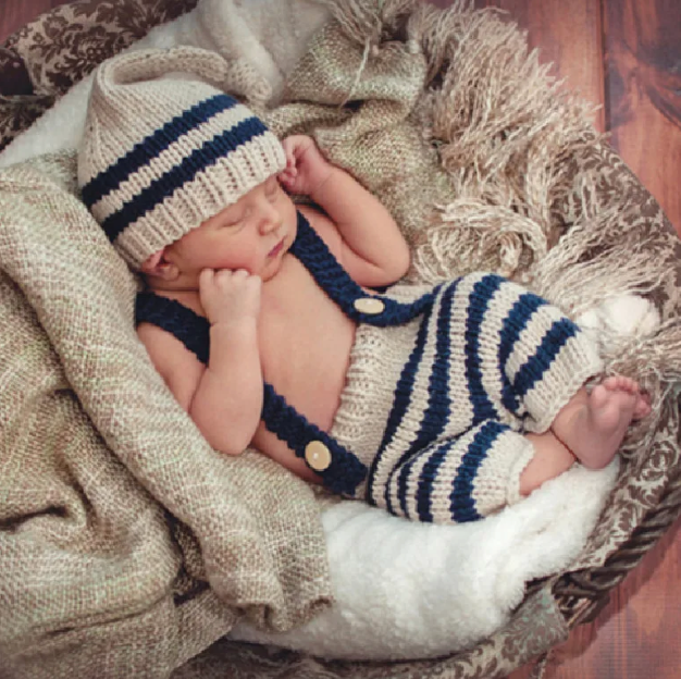 BABY Boys Crochet NEWSBOY Photo Prop Outfit | Newborn Cream & Navy Blue Suspender Pants and Matching Hat | LAST ONE!