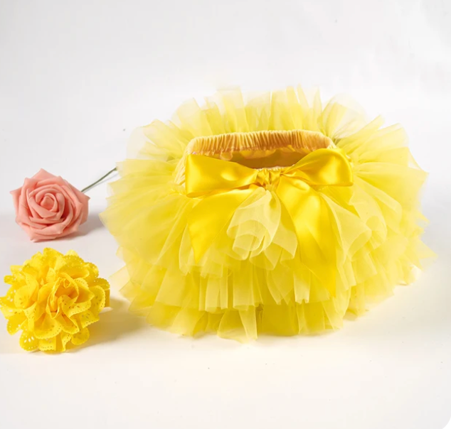 Baby Girls Yellow Tutu Bloomers with Matching Bow | Baby Toddler Girls Bright Yellow Bloomers | Great Baby Gift!